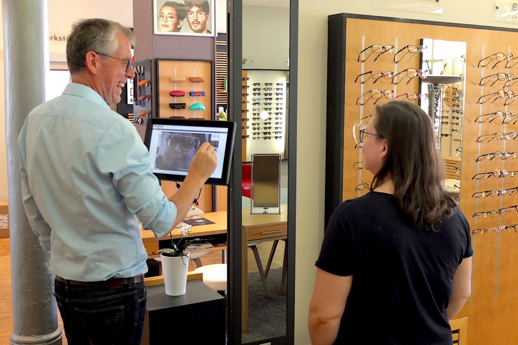 Die eingebaute Kamera kann Bilder und Videos von Ihnen mit Ihrer neuen Brille machen. Sie können dadurch mehrere Fotos und Filmsequenzen miteinander vergleichen. Das macht die Auswahl an Form und Farbe noch leichter.