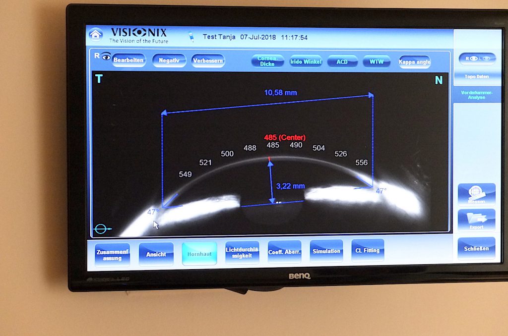 Tonometrie und Vorderkammer-Analyse. In kürzester Zeit erhalten Sie ein